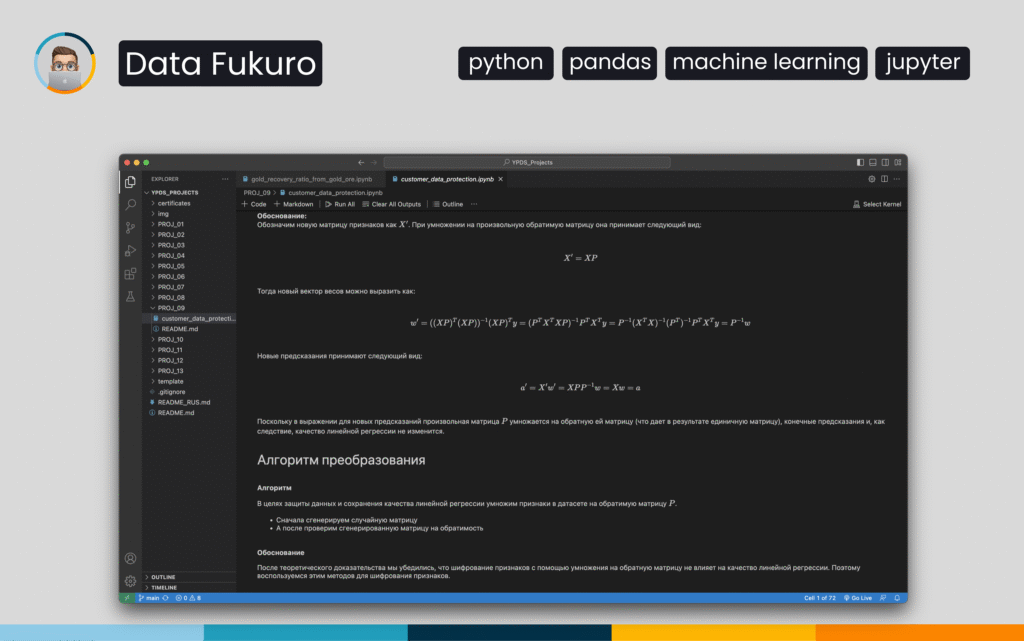 This project develops a secure data-transformation method that protects sensitive customer information while keeping model performance intact. A linear regression model was trained on the original data and then re-validated on data transformed with an invertible matrix. Identical R² scores confirmed that the transformation preserves predictive power while preventing reconstruction of personal data.